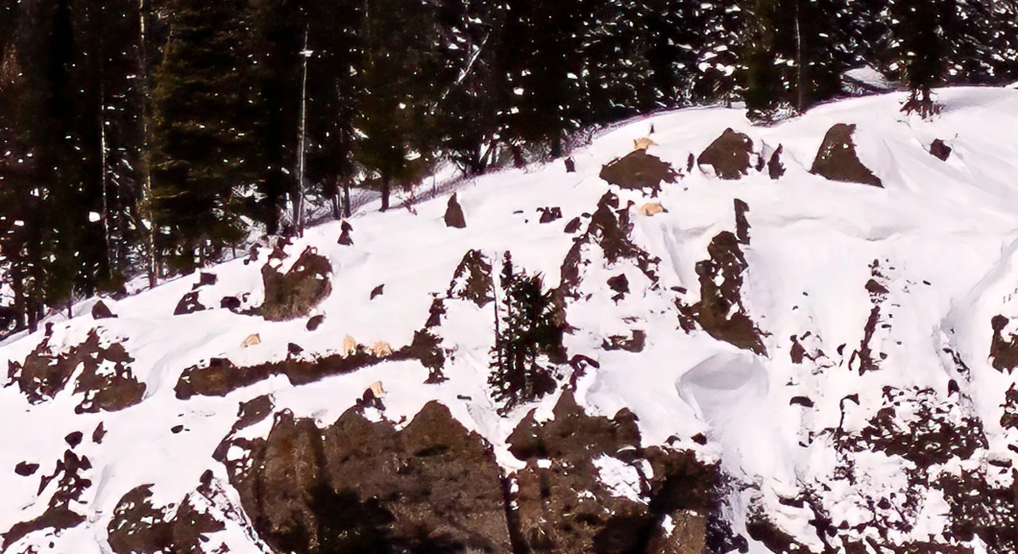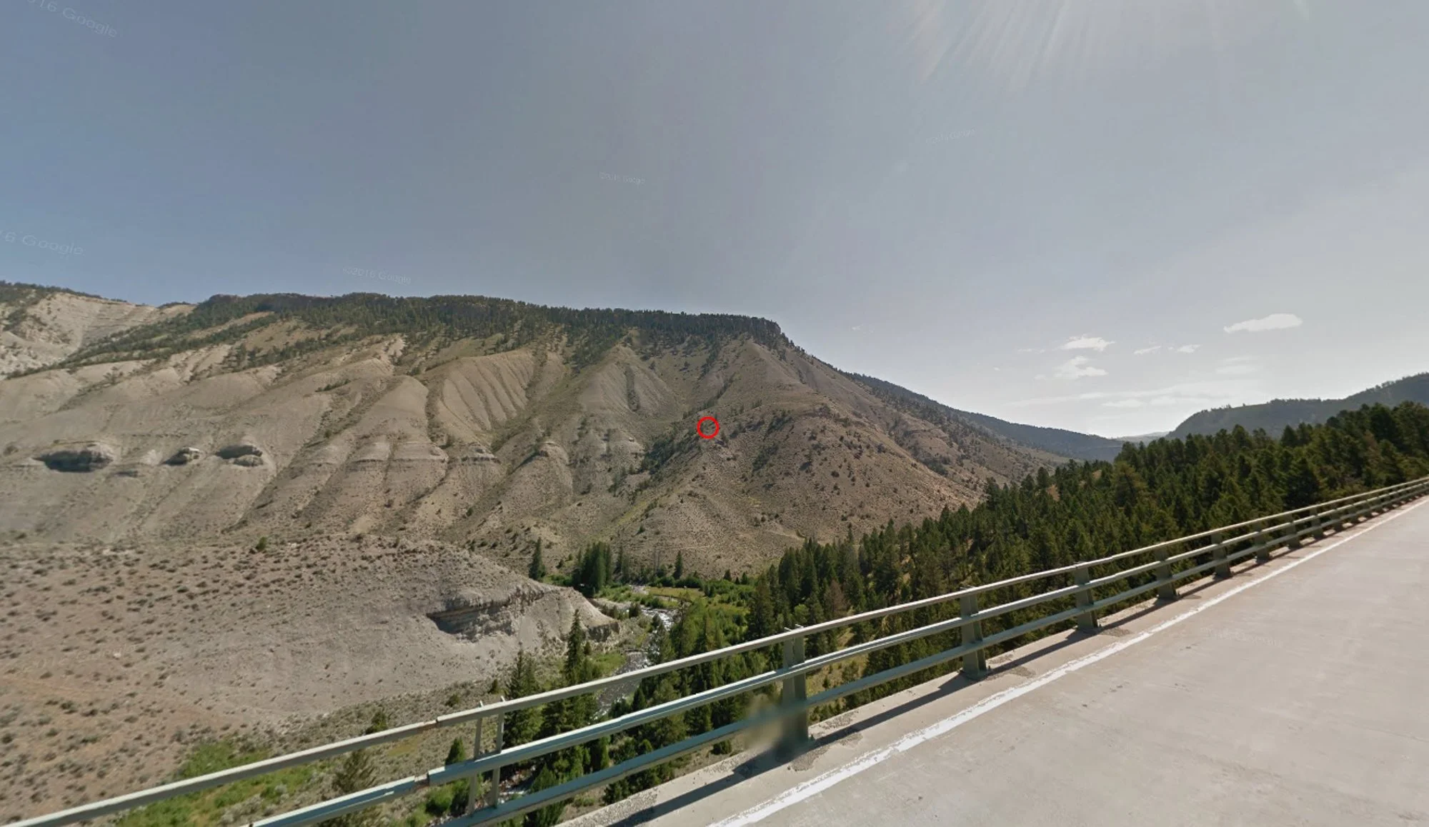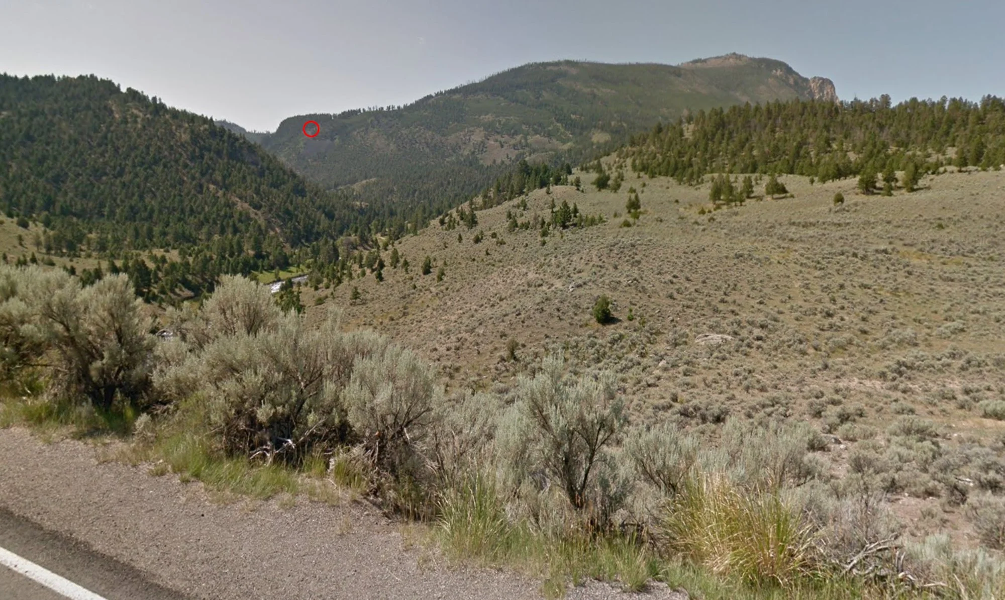 Here is another photo showing the location of a pack of wolves. That red circle is 2,660 feet away…almost exactly a half mile. Now, we are a “lot” closer. So we should be able to actually discern wolves as more than “wolf dots”.