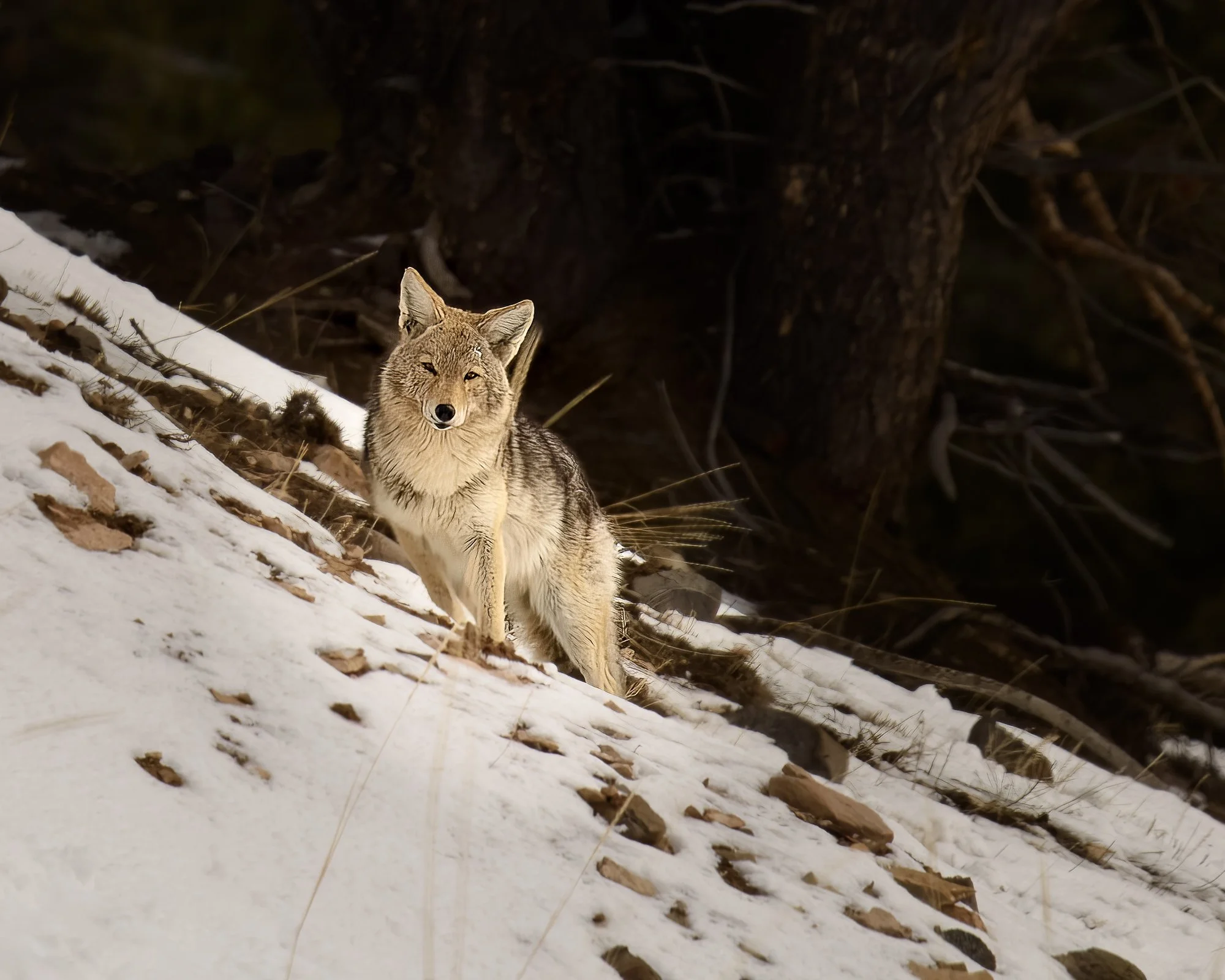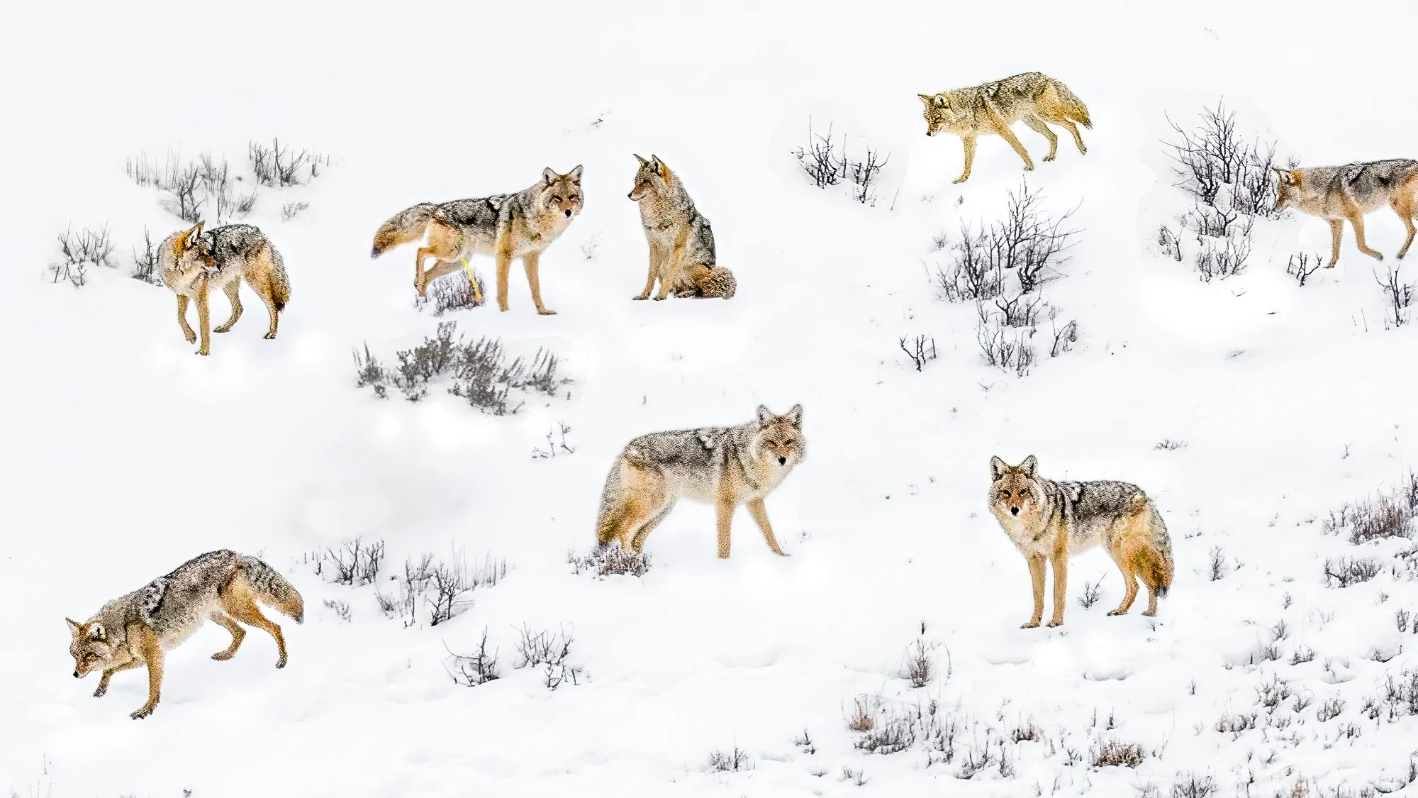 Wylie Coyote has left the desert in his frustration with the Road Runner, and here he is in winter Yellowstone. He looks a bit lonely, but love awaits in the spring…as the last photo will testify.