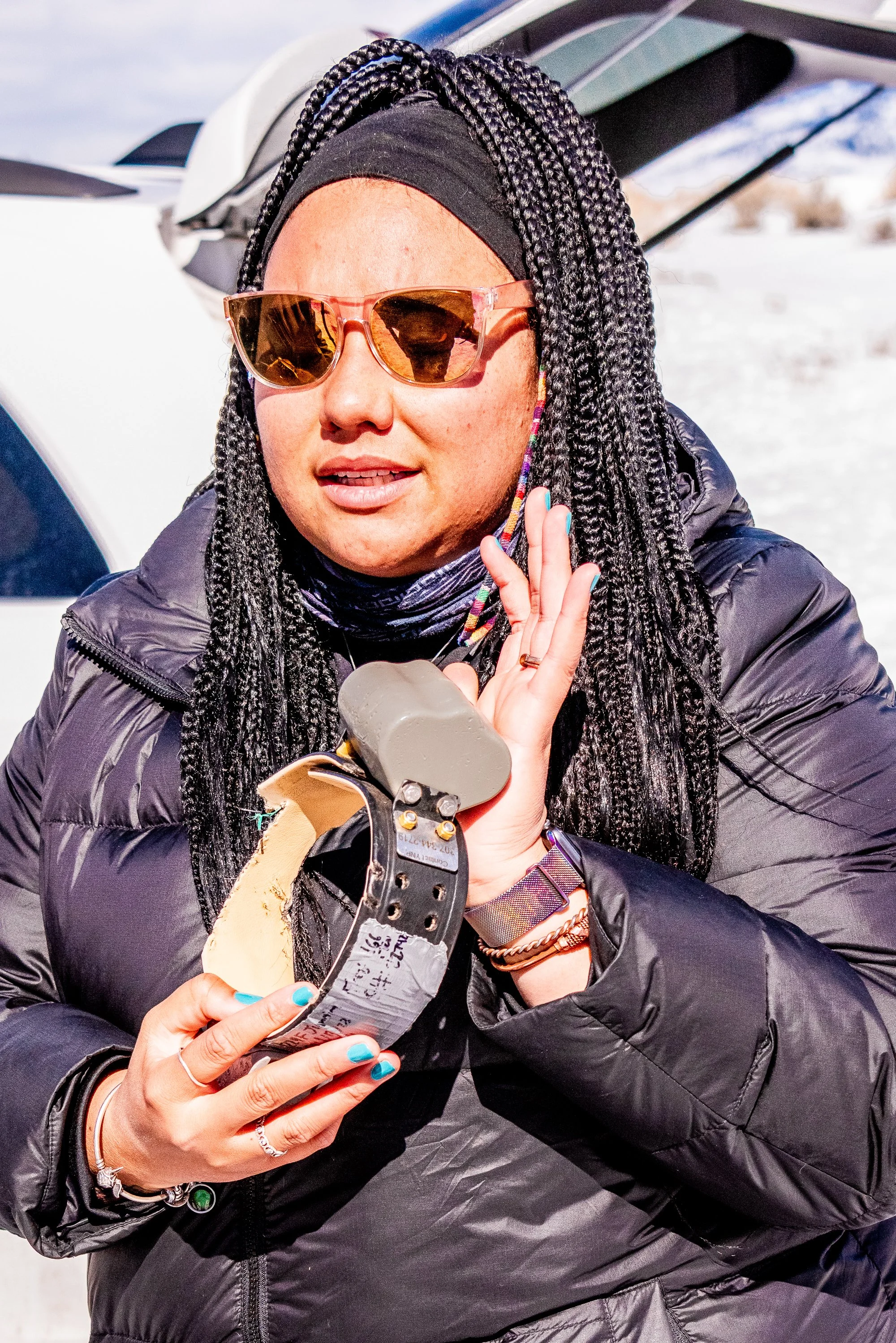 The first two photos are of two different wolf locating crews. The antennae they are holding are essential in finding the wolfs’ location…as you will see in a moment. As they drive the well-maintained road with the antenna held aloft, whenever they get a tone in their headphones, they stop and pinpoint the wolfpack direction. A small number of the wolves have been tranquilized by sharpshooters in helicopters and then radio-beacon collars you can see in the third photo are attached.