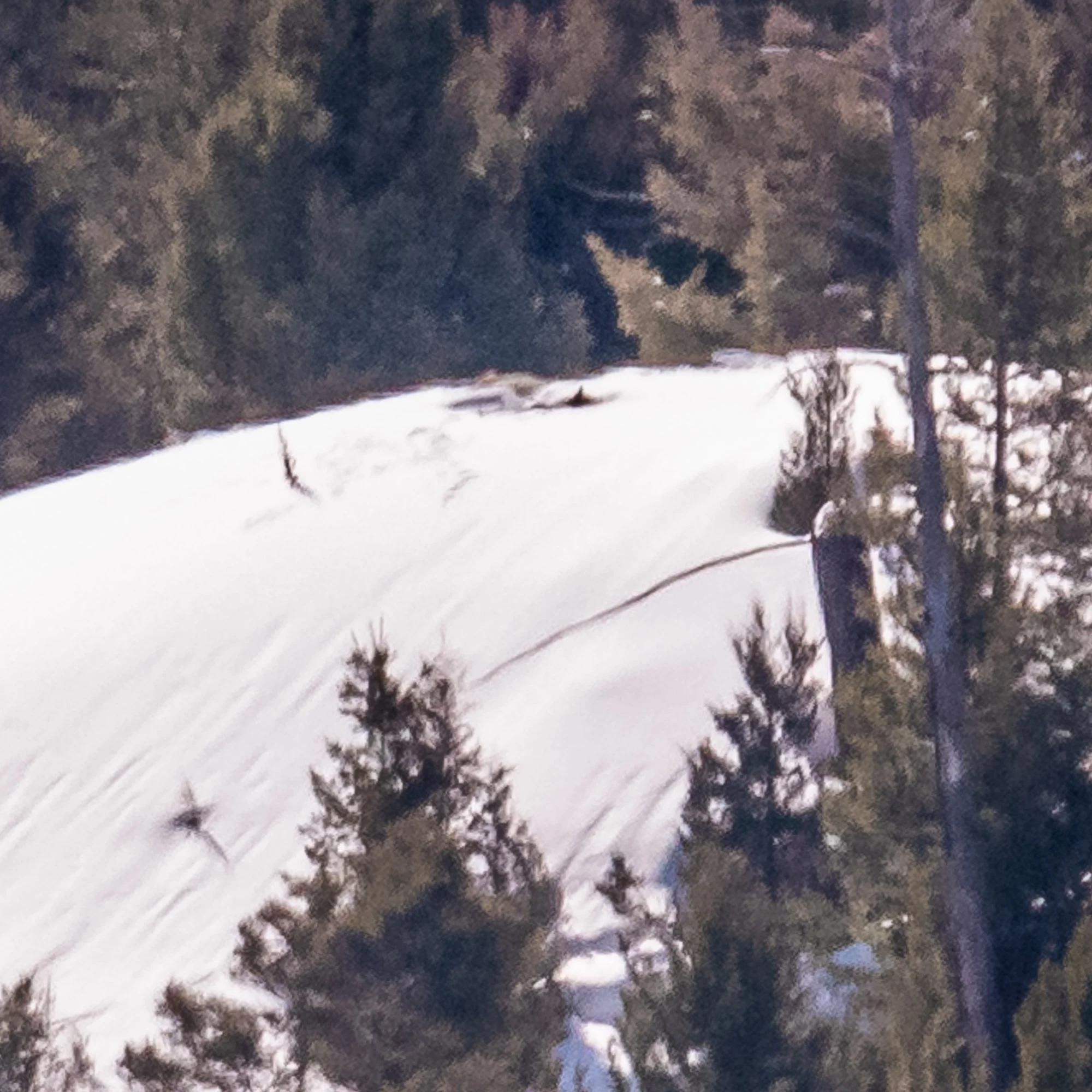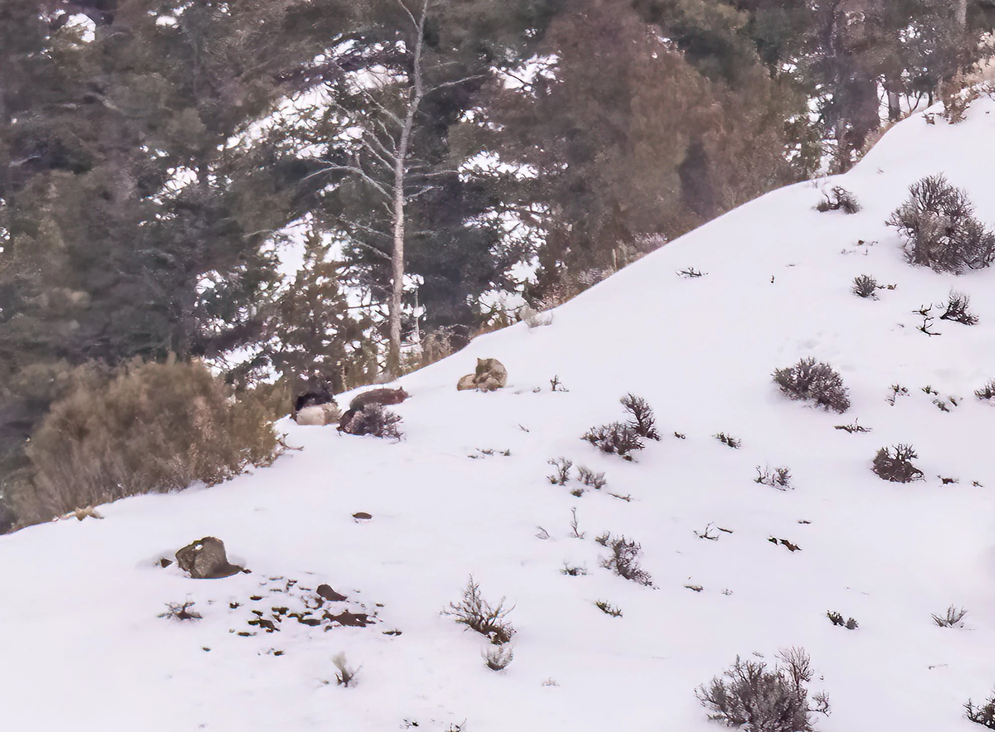 Hmmm. Not sure. Maybe. Is that black dot a wolf? Only by taking a number of suspect photos can you see that yes, indeed, there is something moving there…the images change a slight bit from one shot to the next.