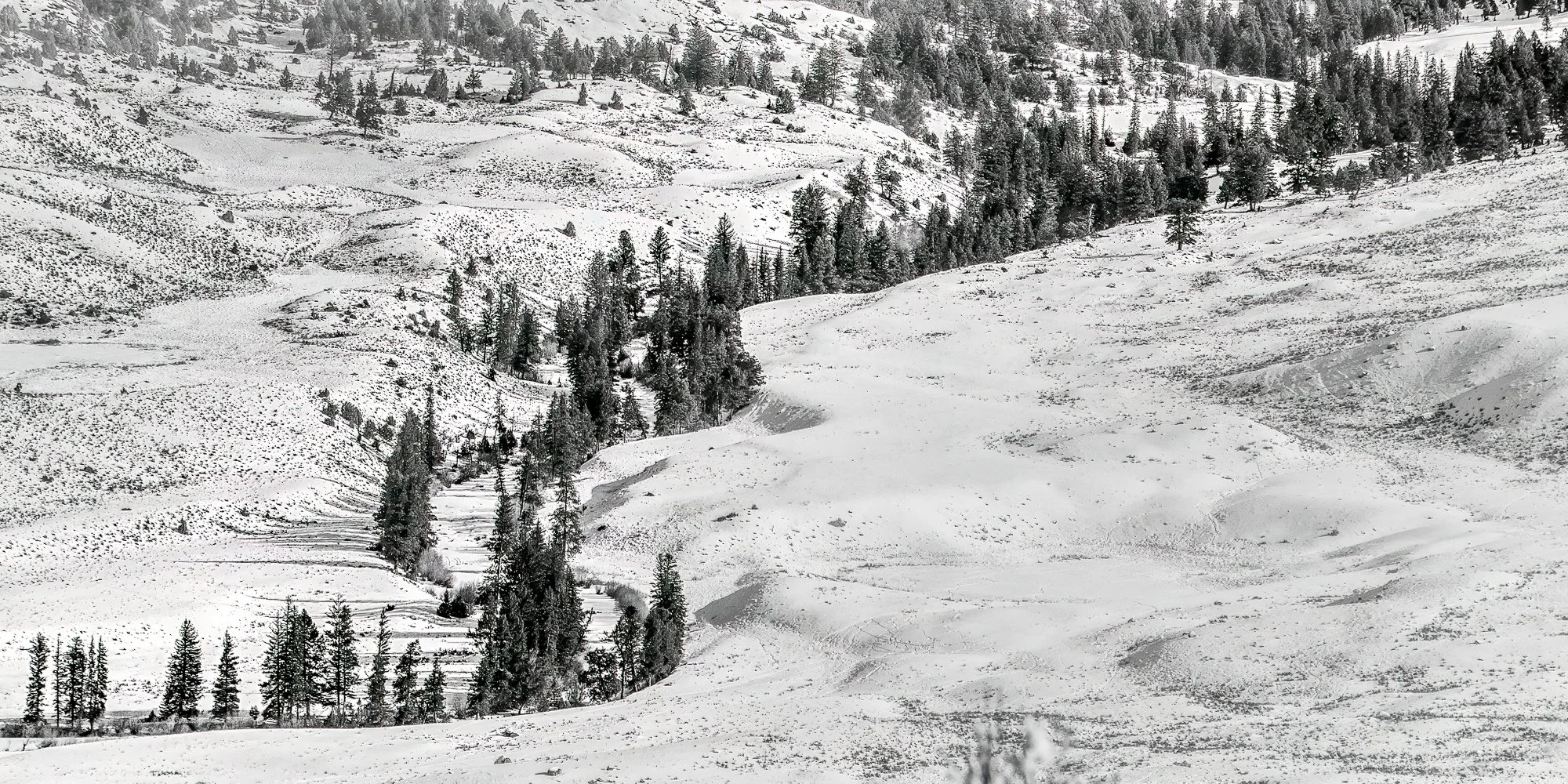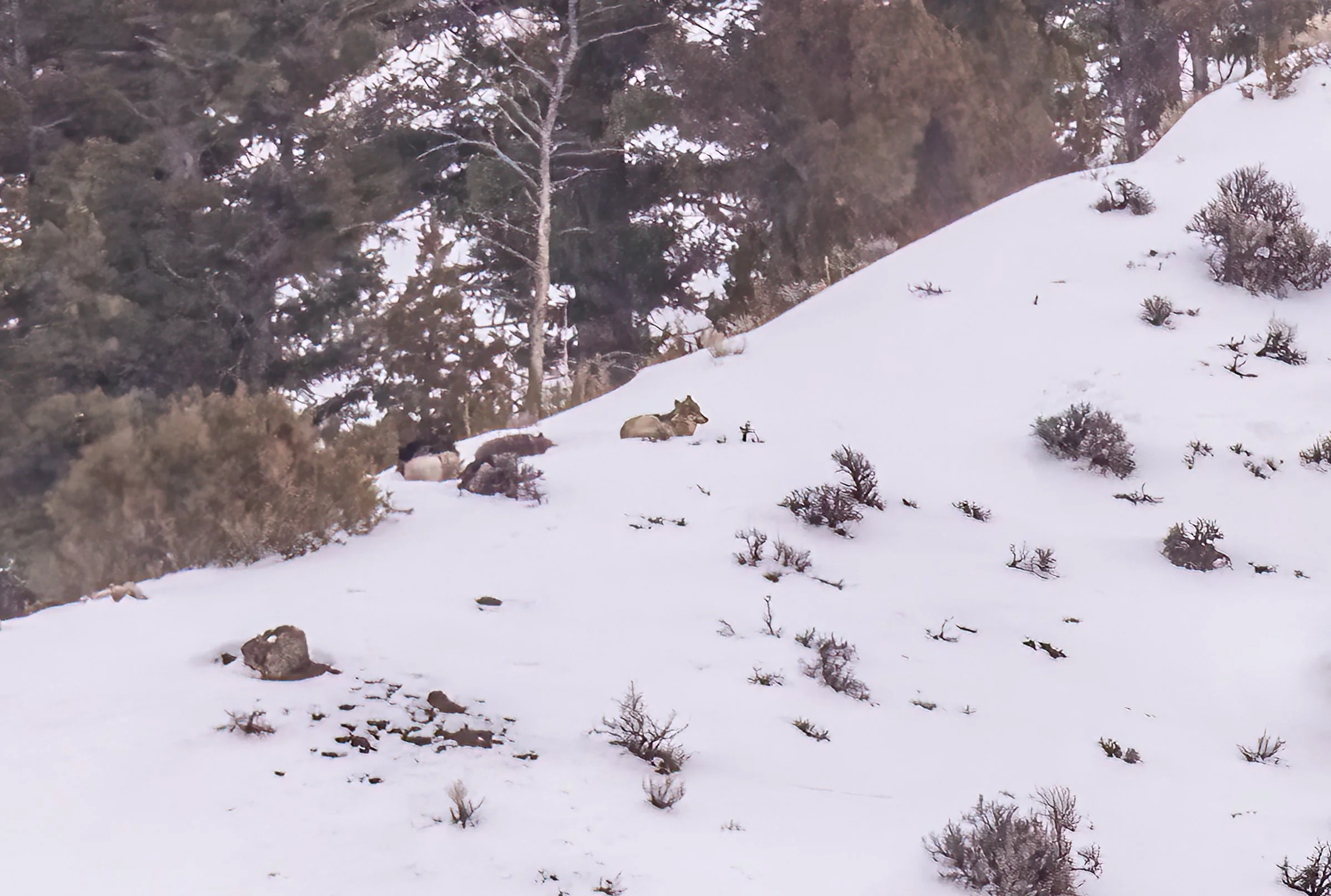 Only one drivable road exists in Yellowstone in the winter. When entering Yellowstone from the north through Gardiner, Montana, you are allowed to drive your vehicle between Mammoth Hot Springs and Cooke City using the Grand Loop Road to Tower Junction, and then US Hwy 212 to Cooke City, MT. Because the mountainous highway east of Cooke City is closed in the winter, the 80 nice folks of Cooke City and us tourists find the road to and from Mammoth Hot Springs plowed and well maintained. That provides great scouting for those seeking wildlife along that stretch of road, which travels right through the beautiful Lamar River Valley. Teton National Park has much more drivable roadways in the winter.