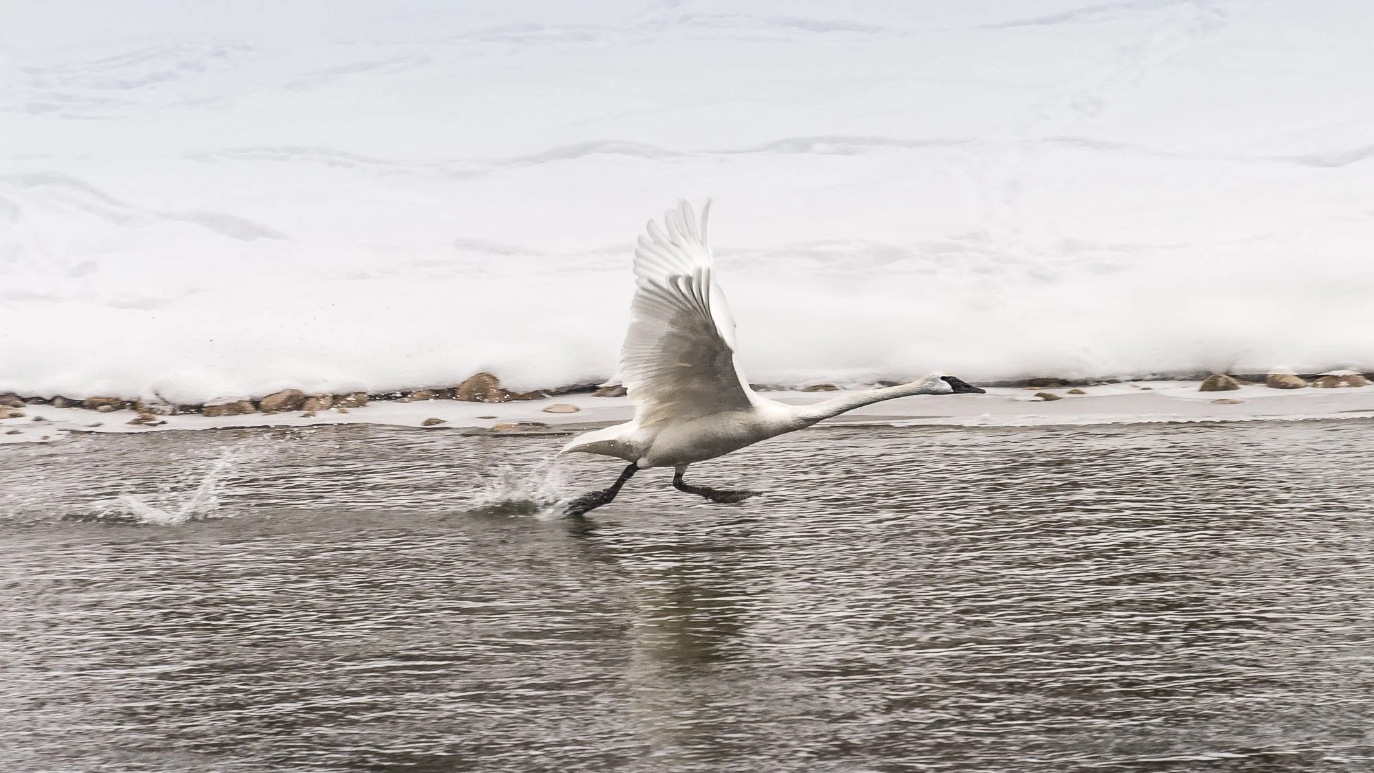 These Trumpeter Swans are reportedly the largest bird on the North American continent. They certainly are graceful as they transition from aquatic birds to birds of the air.