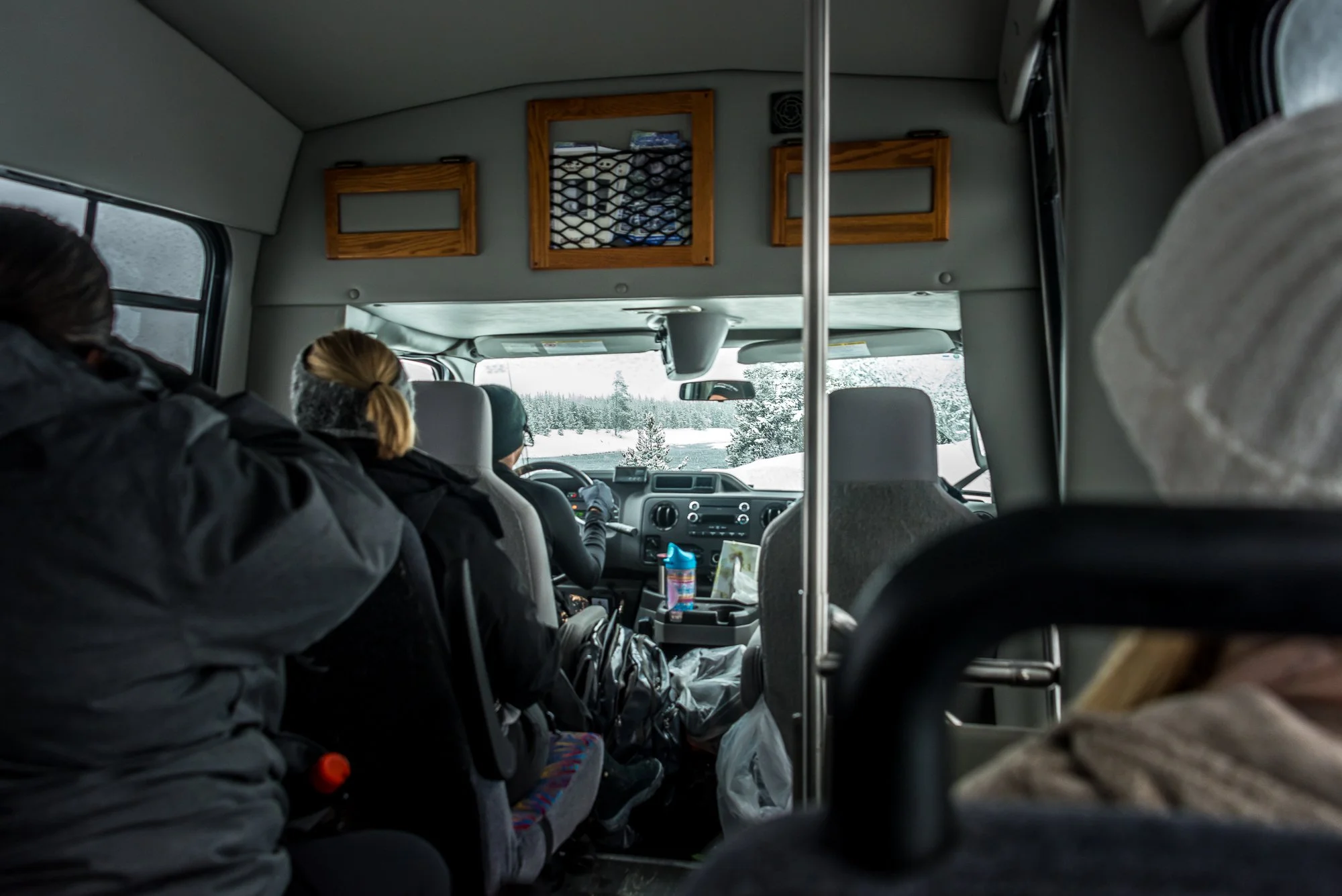 For the 2023 trip with my son Dale, we self-drove back-and-forth along the Mammoth Hot Springs to Cooke City route, staying in historic Cooke City and in Gardiner. Then, after making our way to West Yellowstone, we used one of the snowcoach tours for our Old Faithful adventure.