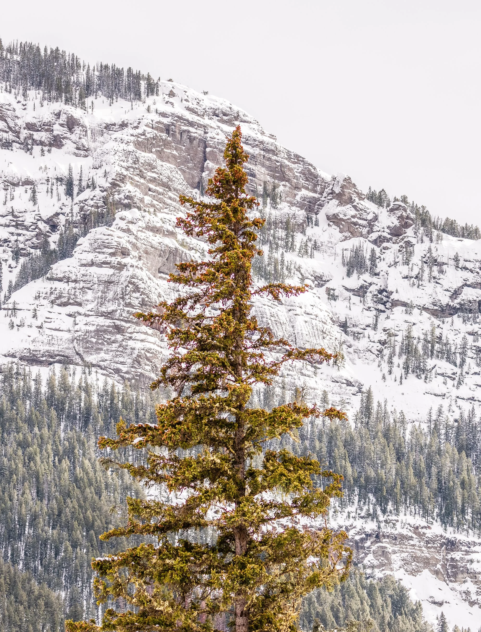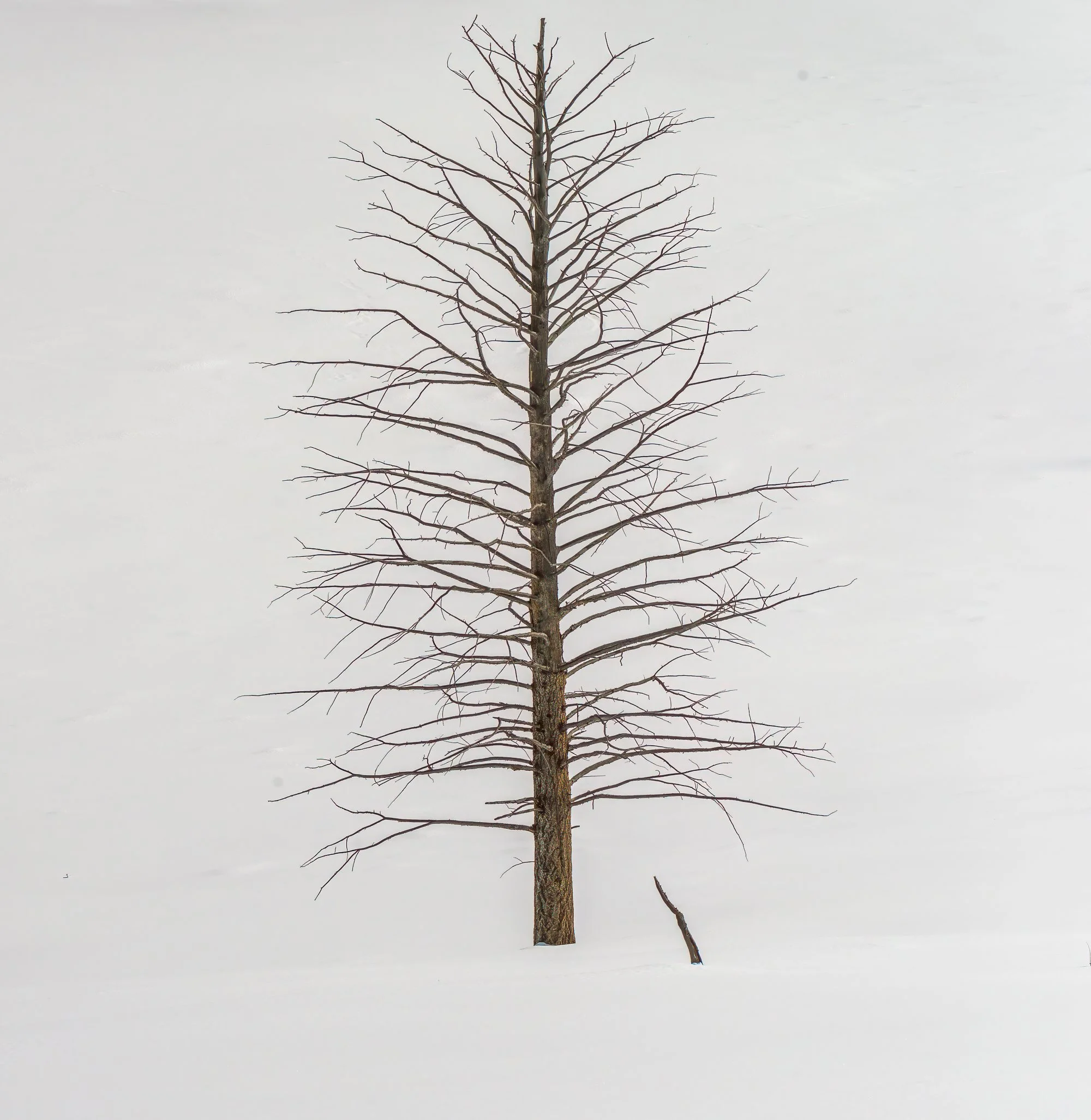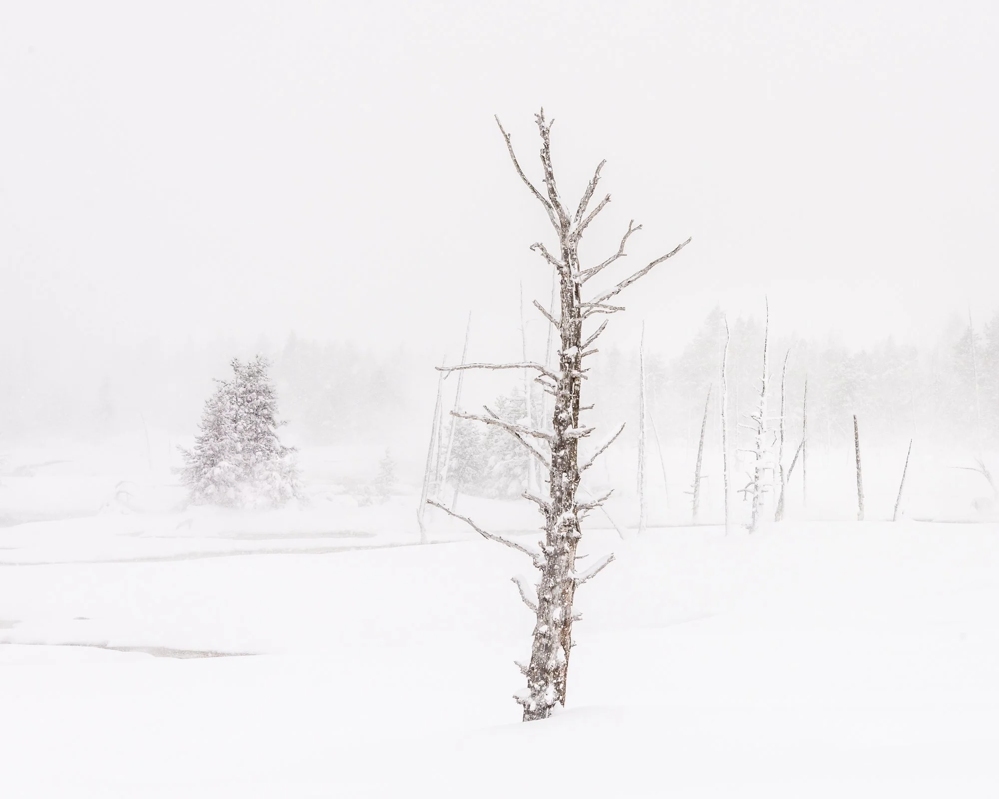 I close with the overall beauty of Yellowstone National Park in winter. Rather than calling them landscapes, as the “land” is not visible because of snow, I call them “snowscapes”. And, a prominent feature of the snowscape is often a solitary, or perhaps a copse, of trees projecting toward the heavens. And color? Yes, even in winter it abounds…particularly in the orangish willows along the streams.
