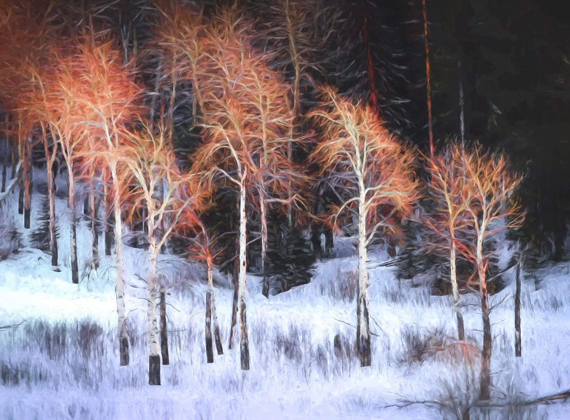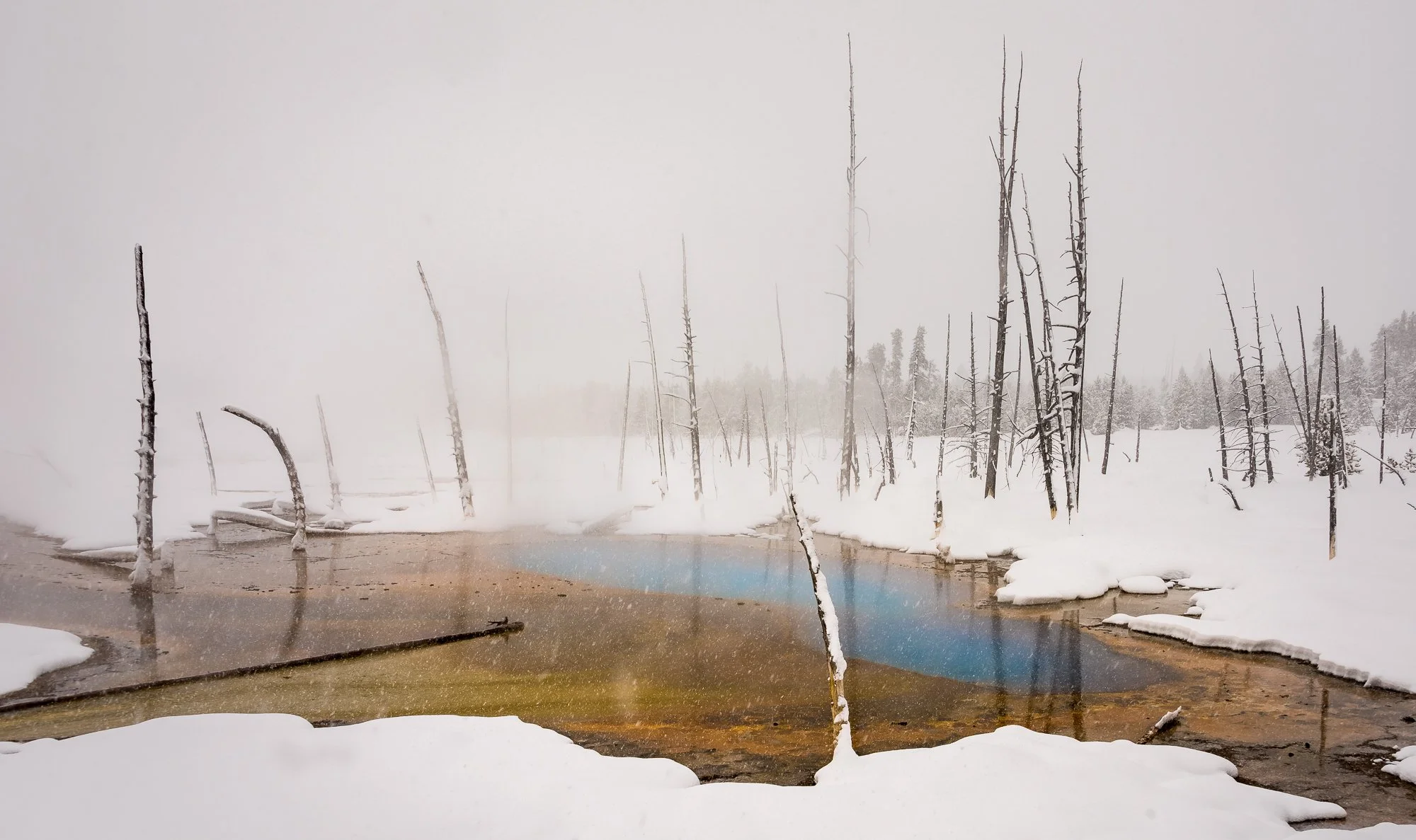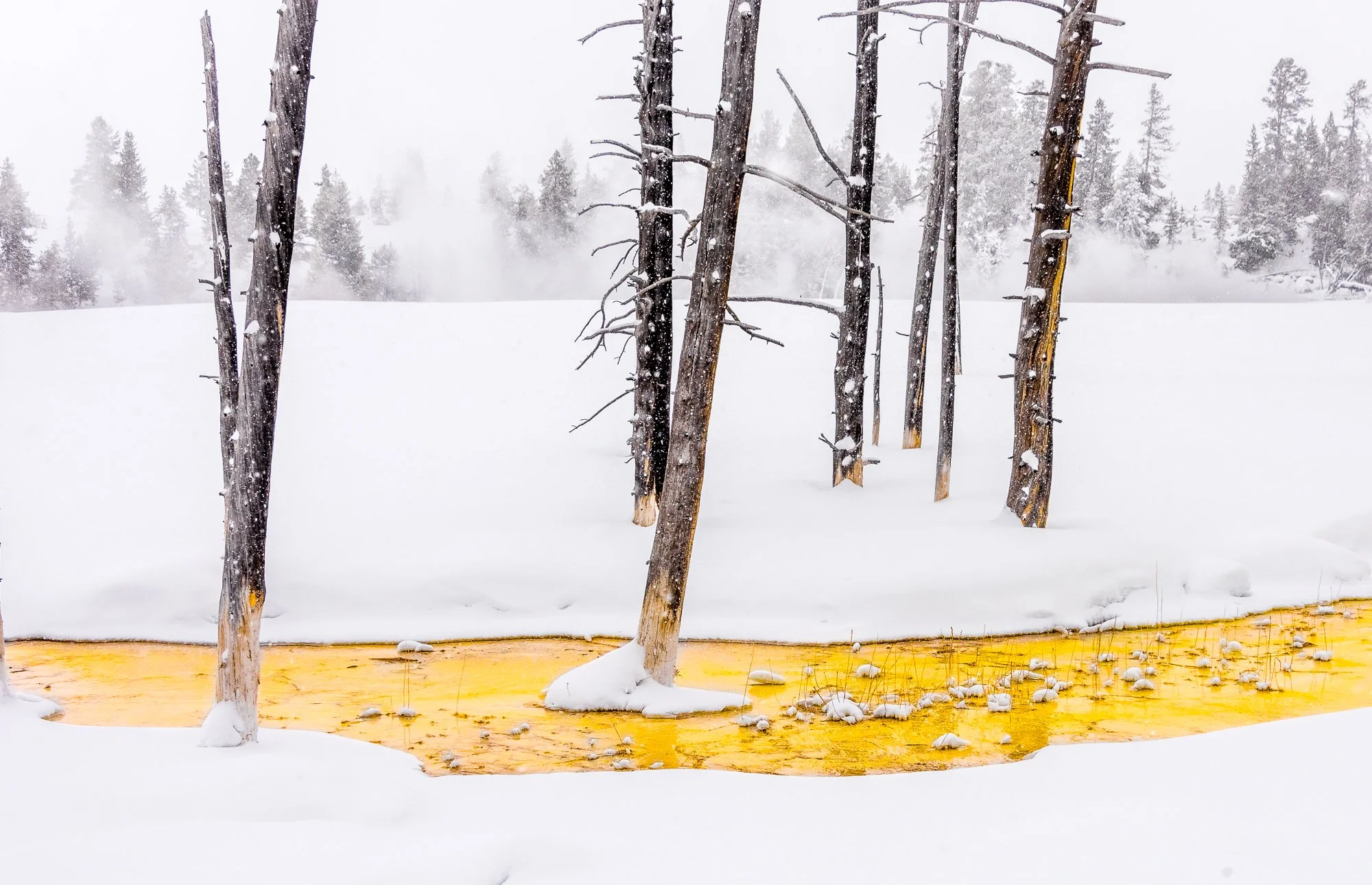 I close with the overall beauty of Yellowstone National Park in winter. Rather than calling them landscapes, as the “land” is not visible because of snow, I call them “snowscapes”. And, a prominent feature of the snowscape is often a solitary, or perhaps a copse, of trees projecting toward the heavens. And color? Yes, even in winter it abounds…particularly in the orangish willows along the streams.