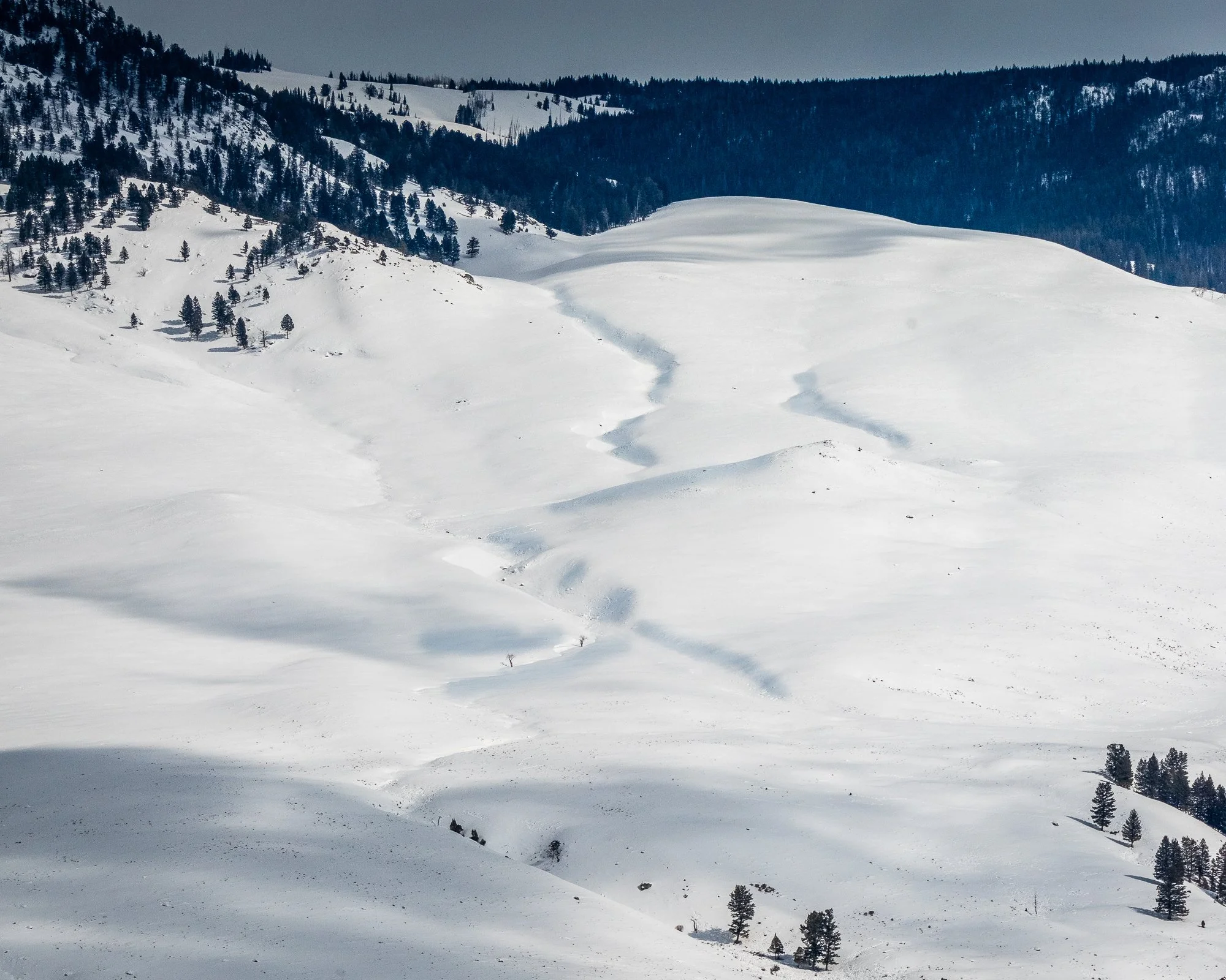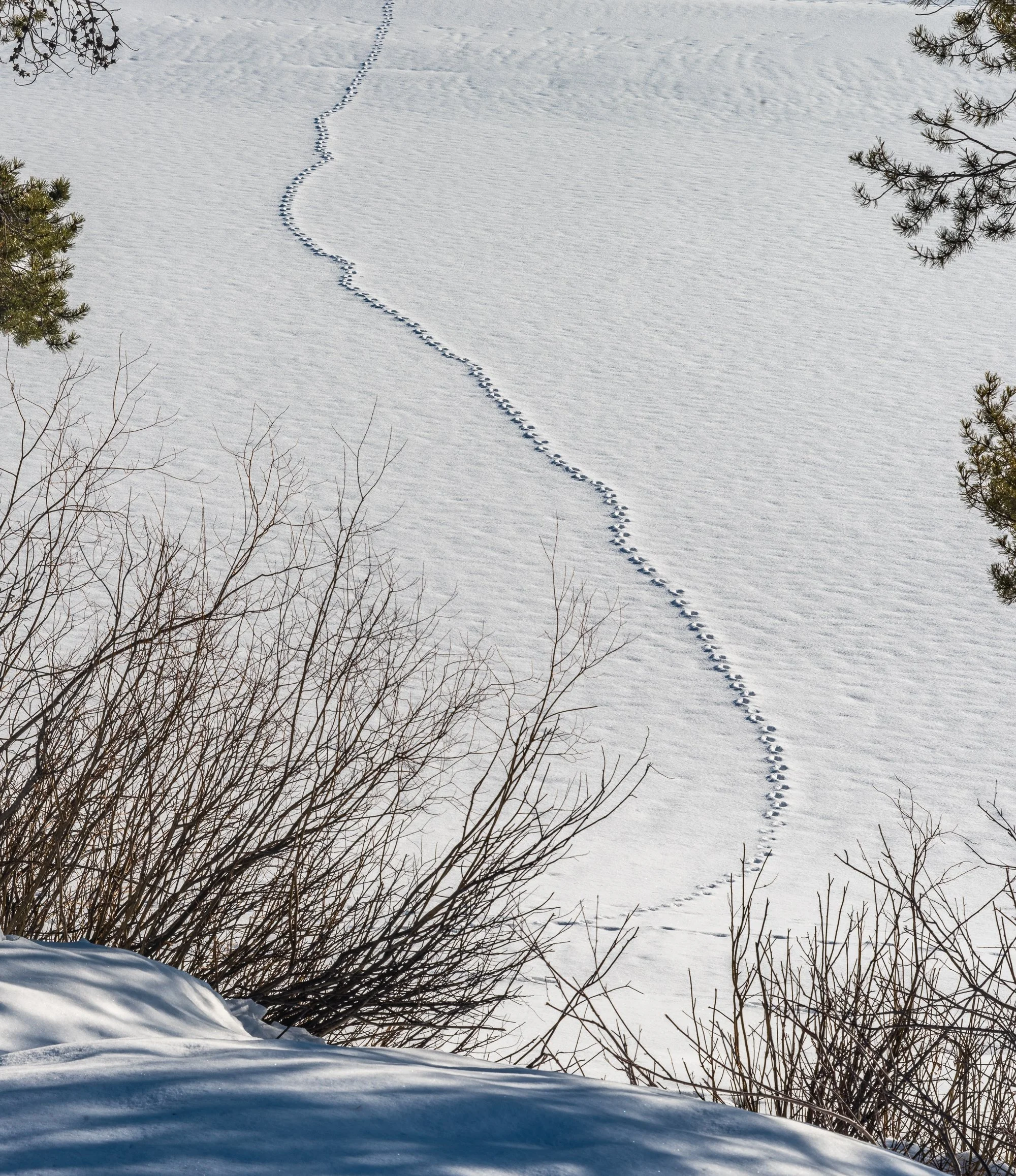 Finally, from the Teton valley we see that this one is both sly, and shy. Who made those tracks in the snow? I’ve cropped the photo a bit so that you can see for yourself.