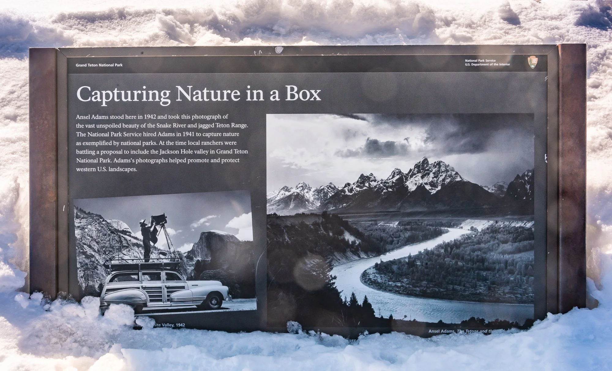 Last, you will see a beautiful sunset photographed from the famous Snake River Overlook that Ansel Adams made famous in 1942. You can see that over the 82 years since he made his photo, that view has vanished because trees have grown to obscure the river.