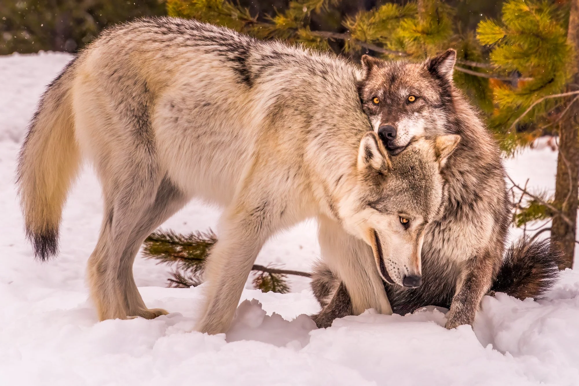 Yes!!! We have three or four actual wolves in the wild playing lazy dog on a warm March afternoon.