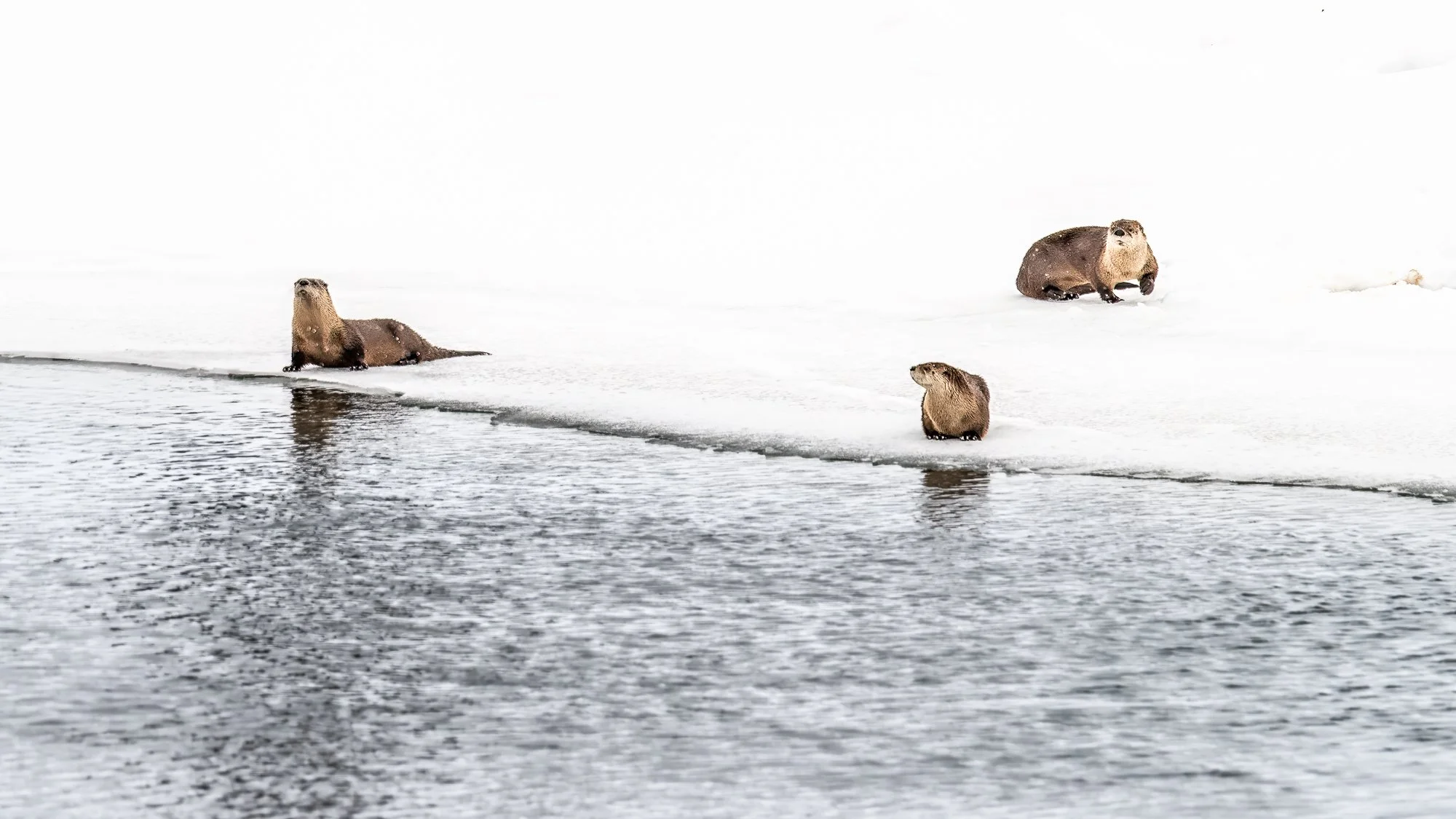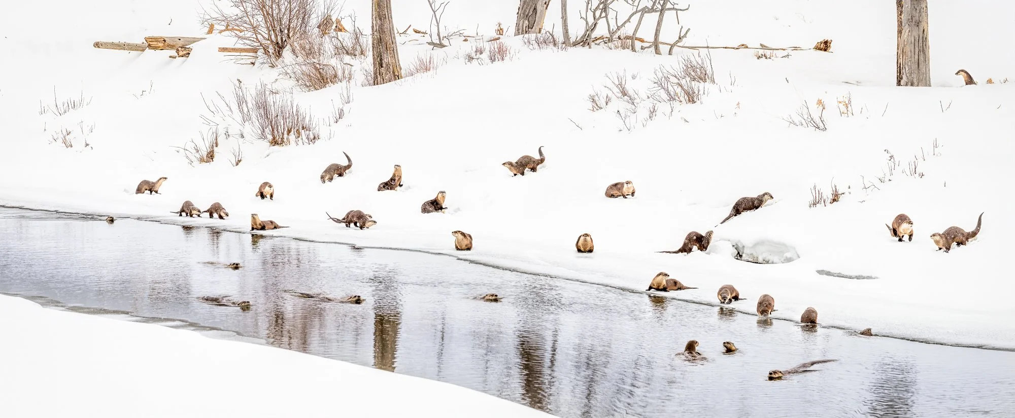 Now it’s time for a bit of otter fun. These little torpedo-like guys love to slide down snowy slopes into the water. They are silky smooth in their motions and oh, so graceful when in the water…or out, for that matter.